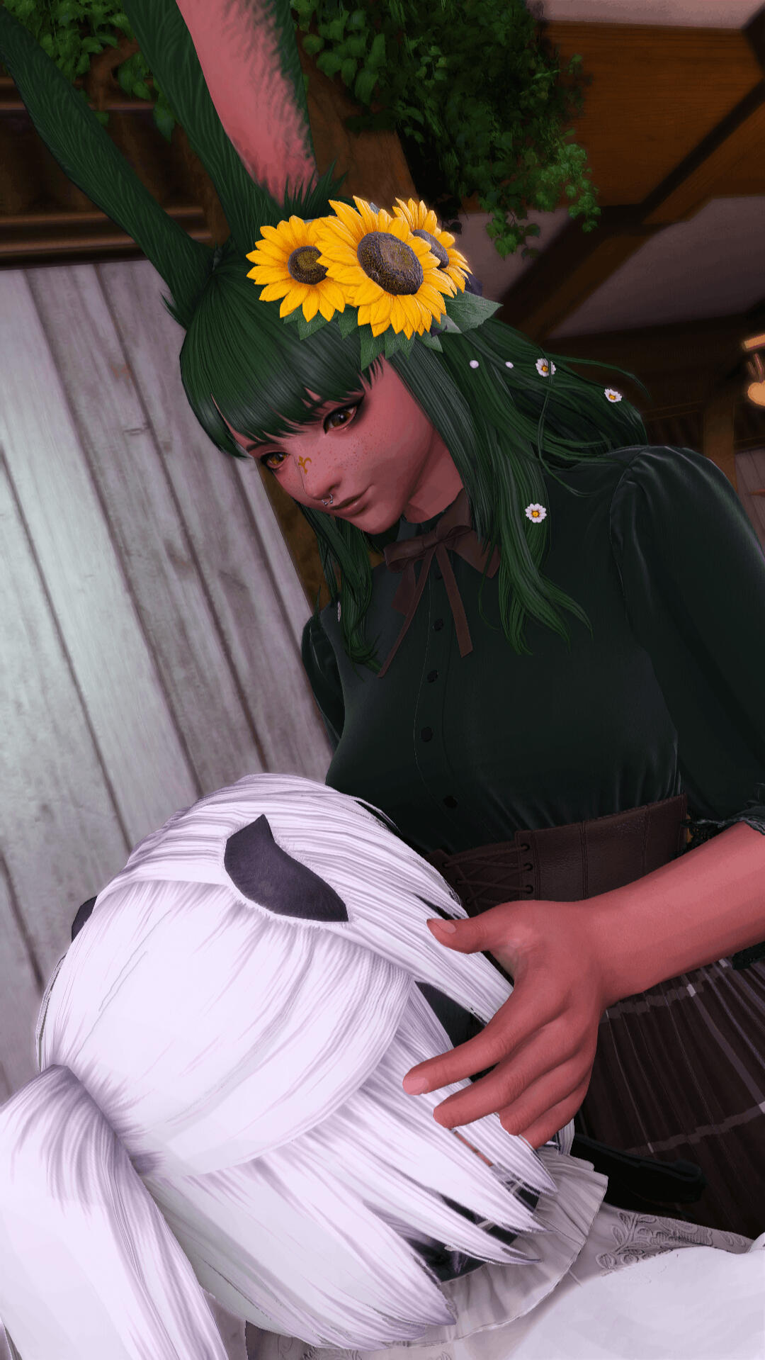 Aldenard opened the world to Wren in ways they had never imagined. Traveling between the city-states, they gathered stories, experiences, and a new understanding of what brought people together– what made them celebrate, what helped them endure.It was in the Black Shroud that something within Wren settled. The forest echoed the Golmore Jungle, yet lacked the suffocating expectations. In Gridania, they entertained local youth with stories and games, rediscovering the joy that had always driven them– but now with intent. Not just to pass the time, or survive, but to create moments that mattered.That fragile peace did not last.Wren was in Gridania when Dalamud fell. They remembered the sky burning, the terror in the streets, and the helplessness they felt that came with watching the world unravel. For all their years, all the time spent wandering, they had never witnessed destruction on such a scale. It was not one of their stories, not a performance. There was no laughter to soften it.In the days that followed, Wren did what they could. They helped where hands were needed, offered comfort where words failed, and stayed when it would have been easier to run. The Calamity left its mark. It stripped away the illusion that there would always be more time, more chances, more tomorrows. And in its wake, Wren came to understand something simple, fundamental even:Joy was not trivial. It was necessary.The small moments Wren created–the games, the laughter, the shared distractions– those were not fleeting indulgences or just a way to get by. They were what helped people endure. From that point on, Wren stopped drifting. They chose to create those moments with purpose.Found Family -
